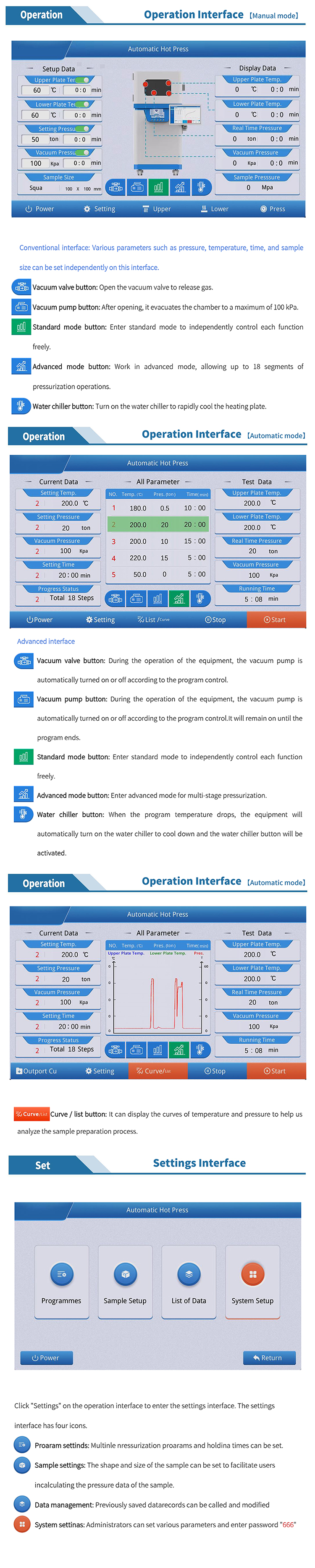 Up to 18 program controls, including pressure, temperature, and water cooling, can all be controlled independently. |