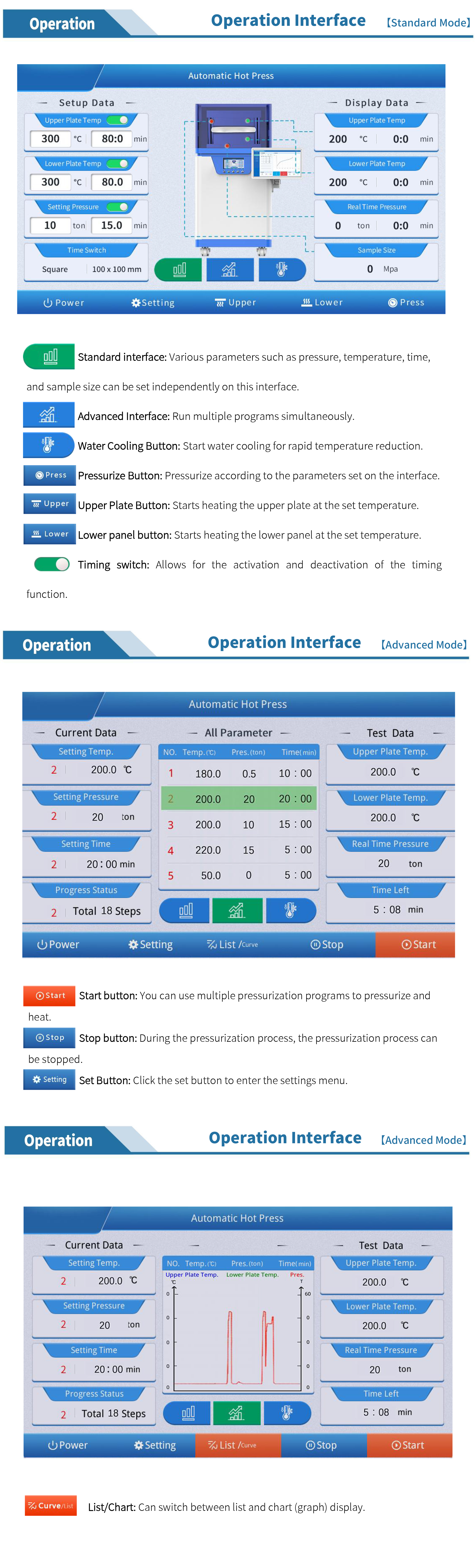 Up to 18 program controls, including pressure, temperature, and water cooling, can all be controlled idependently.